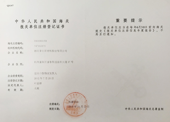 Registration certificate